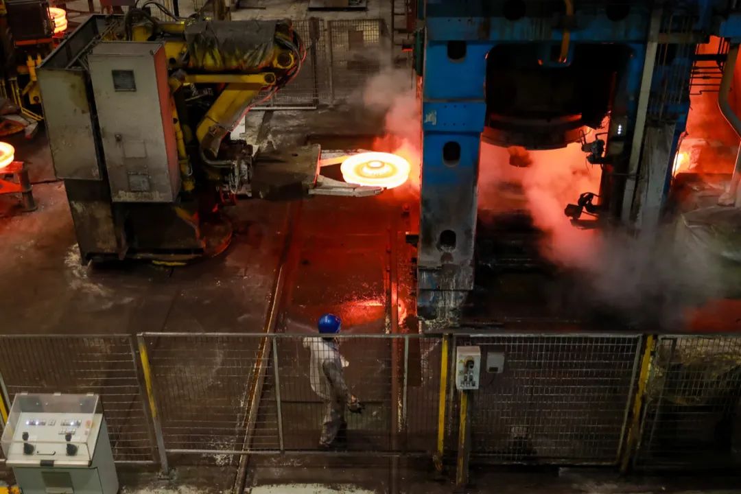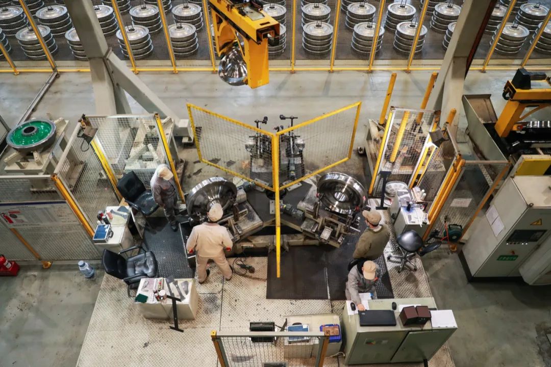 这是一条年产车轮40万片的生产线,也是目前国内自动化程度最高的车轮生产线。从这里生产出来的车轮,可用于高铁、地铁、大型客车等。